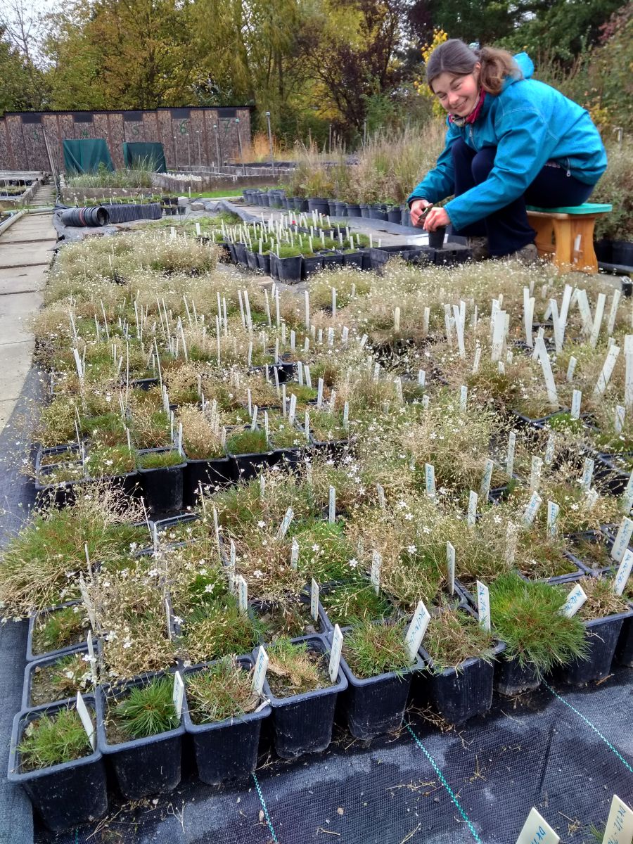 Foto 2. Vypěstované sazenice kuřičky hadcové v experimentální zahradě Botanického ústavu Akademie věd v Průhonicích.