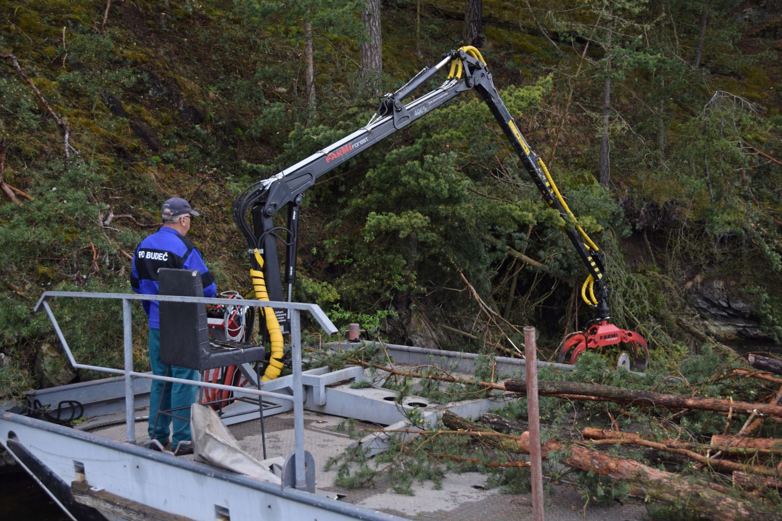 Foto 3. Nálety stromů a keřů na strmých svazích k Želivce byly odváženy lodí ve spolupráci s Povodím Vltavy.
